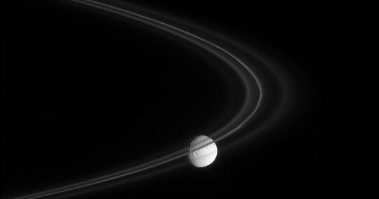 据英国媒体报道,NASA公布了一批探测器新近传回的照片,在这些照片中,我们可以清楚地看到土星光环及卫星。