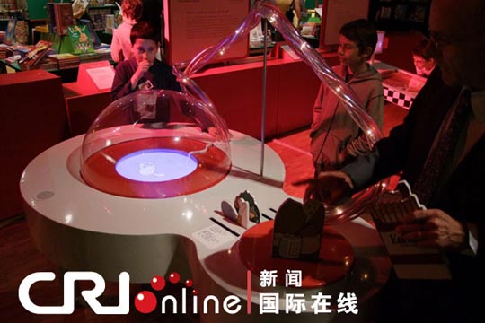 由于展览主要面向青少年,整个展区充满了卡通气息,而展览的主角兼导游则是一个在西方很受欢迎的漫画人物——蒂特夫。展会负责人塞尔日·贝德纳茨科介绍说:“这个展览的目的是让孩子们了解爱与性,并且是用一种他们熟悉的‘语言’--连环画的语言来讲解,因此我们选择了著名的卡通人物来做展览导游。” 图为演示不同食品对胎儿影响的装置。