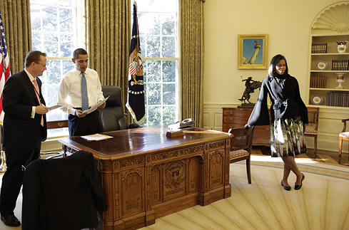 第一夫人米歇尔·奥巴马到总统办公室探班。