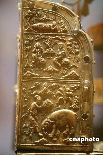江苏省南京市博物馆“五·一”将在朝天宫崇圣殿举办《圣塔佛光——七宝阿育王塔特别展》,届时,鎏金七宝阿育王塔、随铁函出土的水晶珠、金凤凰、铜钱等都将首次公开亮相。2008年南京长干寺地宫出土的阿育王塔,是至今为止中国发现的最大鎏金七宝阿育王塔。 中新社发 吴俊 摄