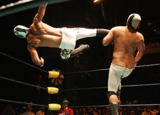 5月5日,美国洛杉矶,为庆祝墨西哥五月五日节,传统墨西哥蒙面摔角比赛在玛雅剧场举行。