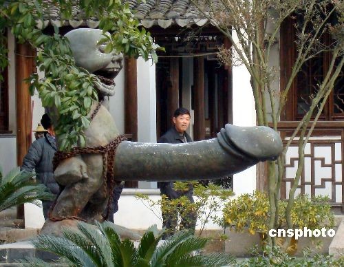 参观者在苏州古镇同里“中华性文化博物馆”内观看雕塑“绑不住的地方”。 据悉,这座面积约7000平方米的性文化博物馆展出古代性文化实物、雕塑、图画、书籍等展品2000件左右。中新社发 王建康 摄