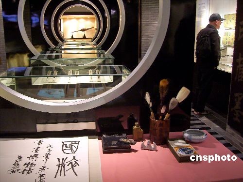 上海笔墨博物馆展示了中国制笔、制墨的工艺史、风格史,包括乾隆御笔、近代名人用笔等在内的不少文房四宝类文物也在这里首度公开,吸引了不少市民前来感受“笔海墨香”的文化氛围。中新社发 井韦 摄