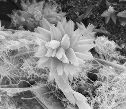 研究者发明了一种不会损害水泥微观结构的新型水泥干燥法。该方法做出来的水泥可明显看到“花瓣”和“芽”,花的宽度大约是4微米。