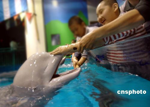 10月11日,黑龙江哈尔滨极地馆白鲸辅助治疗儿童自闭症活动正式启动,首批接受治疗的16名患儿名单和初步治疗方案已确定。当日下午,共有8名患儿在家长陪同下,分两组分别在温度为13.2摄氏度、湿度86%的白鲸馆内进行30分钟白鲸辅助治疗。中新社发 肖劲彪 摄