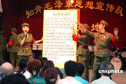 十一月二日,重庆“洋人街”知青农庄内,由上世纪曾“上山下乡”的知青组成的“知青毛泽东思想宣传队”正教前来游玩怀旧的游人们唱“知青怀旧歌”,一起回忆往昔岁月。“洋人街”是重庆南滨路四期示范段工程——长江风情园的首期示范工程,亦是重庆市首条主要由外国人经营的街区,每家店造型都是异域风情十足。中新社发 郭晋嘉 摄