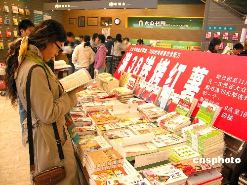 南京新街口一家书日前店就策划了一期“买书藉送烤红薯”的促销活动。据悉,商家希望人们读有益的书藉,吃保健的食品,过健康快乐的生活。中新社发 谷昌旺 摄