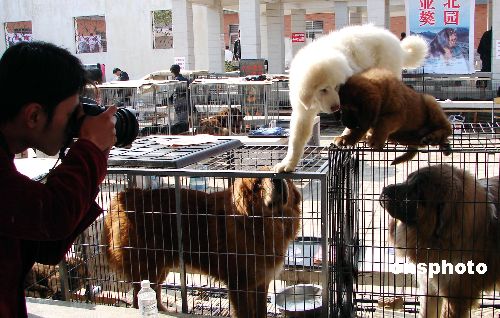 一月三十一日,中国(晋江)首届藏獒展隆重举行,来自沈阳、北京、河北、河南、山东以及福建本省的二百多只藏獒集体亮相,让广大侨乡市民见识了犬声鼎沸的局面。中新社发 傅丹丹 摄