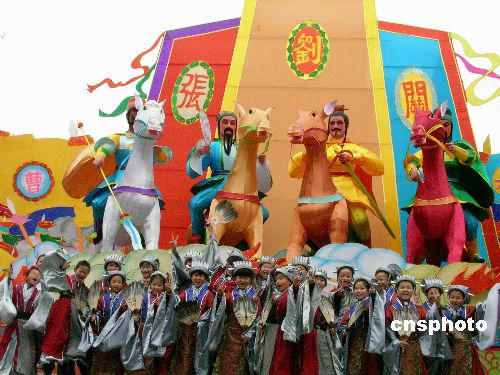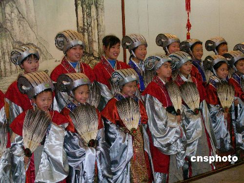 2月13日,成都大庙会选出的11对双胞胎“喜神”,在成都武侯祠博物馆亮相。他们将在狗年新春为游客们送上新年的祝福,带去喜气和吉祥。中新社发 杨杰 摄