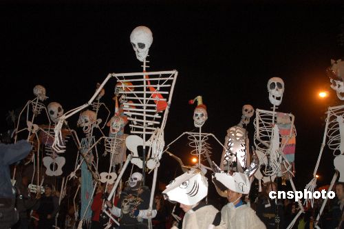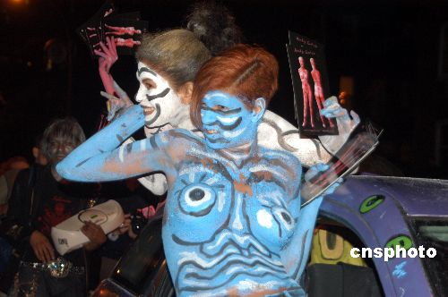 十月三十一日,一年一度的纽约万圣节游行在曼哈顿举行。中新社发 谭宏伟 摄