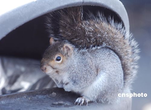 美国纽约州圣诞节前夕,松鼠不畏天寒地冻的四处寻找食物。中新社发 贾国荣 摄