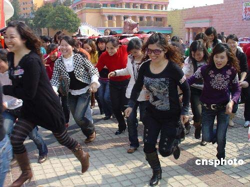 3月6日,长沙世界之窗广场内,千余名女士穿着4厘米以上的细跟高跟鞋赛跑,用这种特殊的方式纪念奥运年的妇女节,并为北京奥运加油。中新社发 肖前辉 摄