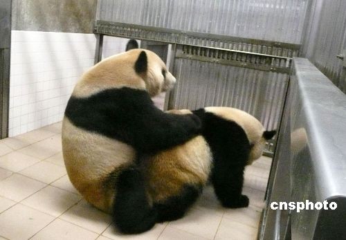 5月4日,成都大熊猫繁育研究基地提供的消息称,4月27日下午至28日上午9时,日本和歌山白浜野生动物园雌性大熊猫“良浜”与雄性大熊猫“永明”先后三次自然交配成功,令中日大熊猫专家备感欣喜。旅日大熊猫“梅梅”之女“良浜”,也成为中国与国外开展大熊猫长期国际繁育合作计划以来,首只在海外婚配成功的第二代大熊猫。中新社发 王基山 摄
