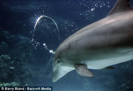 海豚试图穿过气泡