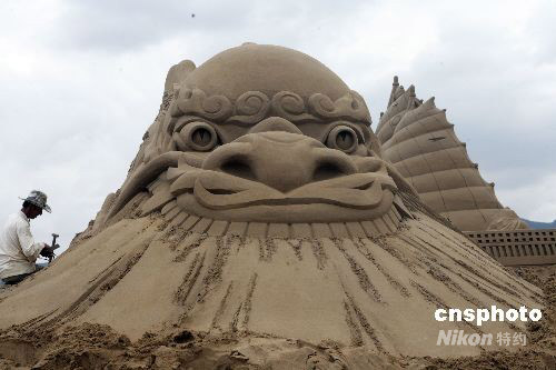 9月29日,第十届“全球通”中国舟山国际沙雕节在浙江普陀朱家尖南沙开幕。主题为“世界海岛奇观”的沙雕公园面积达1万平方米,由50余件大小不一的沙雕作品组成,分“海神波塞冬”、“神秘岛”、“舟山特色岛”4个部分。中新社发 赵隽 摄