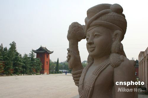 被誉为中印两国“总理工程”的河南洛阳白马寺印度佛殿,目前正在最后的装修冲刺阶段。近日,佛殿已经初露芳容。佛殿占地3450平方米,2006年4月动工,2007年9月开始殿内装修。预计一个月后即可全部完工。中新社发 听伊 摄