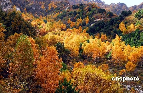 世界地质公园白石山雄居八百里太行山最北端,最高峰海拔2096米,地貌奇特,植被茂密,为中国惟一的大理岩峰林景区。每逢秋季,如诗如画。中新社发 吕子豪 摄