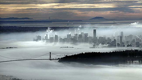 据英国每日邮报消息,修长的狮门大桥和在云雾中“漂浮”的摩天大楼,构成了一幅幻美的温哥华景象。