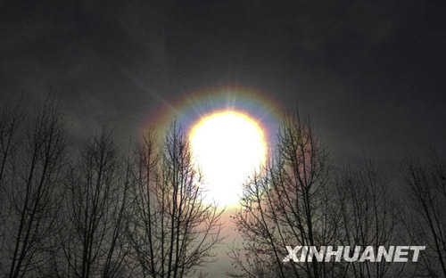 图:烟台上空出现“日晕”奇观