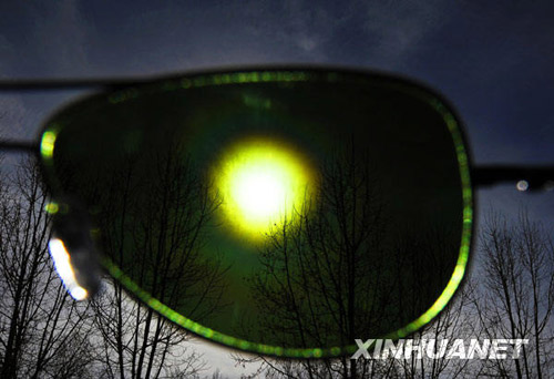 这是透过变色镜片拍摄的日晕。新华社记者 普布扎西 摄