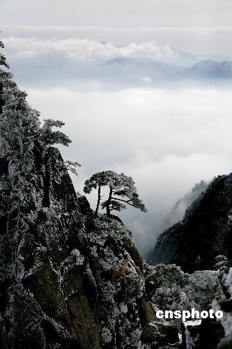 2008年12月22日,安徽黄山风景区雪后放晴,云海翻腾,蔚为奇观。把黄山装扮得犹如蓬莱仙境,令人神思飞越,浮想联翩,仿佛进入梦幻世界。中新社发 方也广德 摄