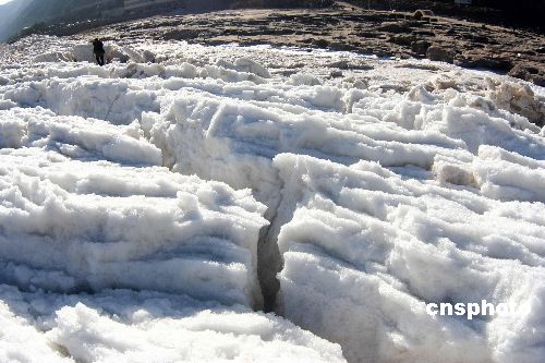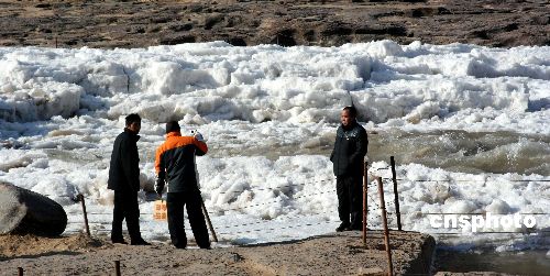 1月上旬,黄河壶口瀑布一夜之间被冰封,瀑布失去了踪影,十里河槽变成了一条白色的巨龙。据悉,这种景观已多年未见。中新社发 张旦 摄