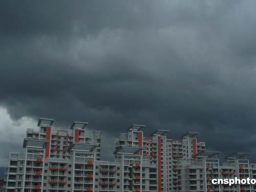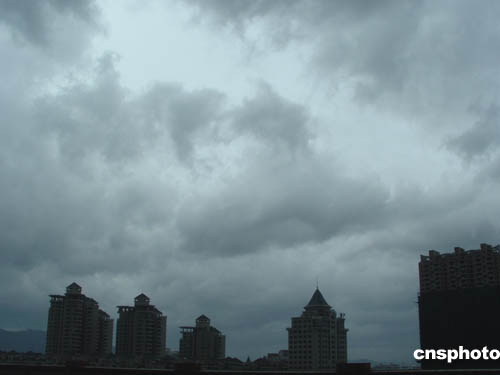 据中央气象台预报,第五号台风“格美”预计可能于7月26日前后在福建中北部至浙江南部一带沿海地区登陆正面登陆。图为7月25日清晨,福州上空乌云满天,天空中伴随着小雨。中新社发 张 斌 摄