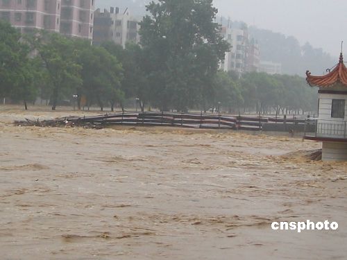 “碧利斯”前脚刚过,“格美”紧跟而来。受“格美”外围影响,7月26日开始,湖南南部郴州地区迎来新一轮降雨,致使原本受灾严重的该地“雪上加霜”。截至7月27日上午郴州部分城区进水。中新社发 麻结 摄