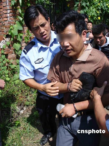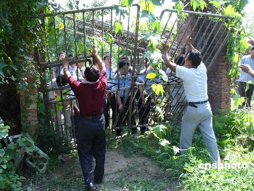 | 8月12日,江苏如皋法院执行人员在吴窑镇何柳村10组执行一起相邻权纠纷,因被执行人沈向阳、沈向红兄弟阻挠执行,被强制带离执行现场后,他们仍不能认识自己行为的违法性,被法院司法拘留15天。新闻背景:2001年秋,江苏如皋吴窑镇何柳村10组村民沈向阳,未经任何部门批准,在西邻刘德康一家行走的路上建上围墙截断道路,村组多次解决此事,最终无果。刘德康于2005年向如皋法院起诉,法院于同年3月28日作出一审判决。责令沈向阳将住房前道路范围内的围墙拆除。法律文书生效后,法院开始执行此案,被执行人沈向阳将路上的围墙自行拆除。案件执结后,沈向阳又以树枝等杂物设置障碍。2006年7月法院裁定撤销执结通知书,决定重新执行此案,在当天的执行中,将这条阻止刘德康一家通行达5年之久的路重新修好。中新社发 孟大庆 摄
