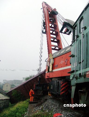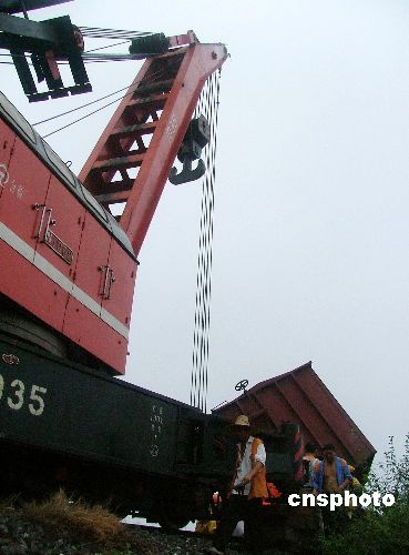 9月1日,救援人员在火车出轨事故现场施救。8月31日晚23时左右,安徽巢湖市铸造厂附近的一条铁路支线发生货运火车出轨事故。目前,事故原因正在调查中。中新社发 苏东山 摄