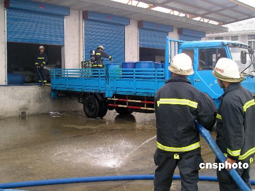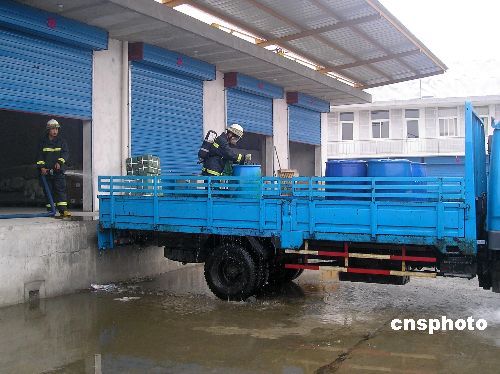 9月8日,南通城港路某物流有限公司内一辆车载的硫酰氯罐桶突然发生泄漏,并散发出刺鼻的臭味,严重威胁着周围群众的安全。当地消防部门接到报警后,迅速出动多辆消防车赶赴现场,疏散周围群众,并成功将其处置险情,避免了严重事故的发生。中新社发 张于 摄