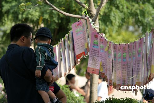 9月23日,第10次万人相亲会在江苏南京白马公园举行。许多高学历、高层次、高收入的“三高”人士在现场挂牌征婚。中新社发 孙忠南 摄