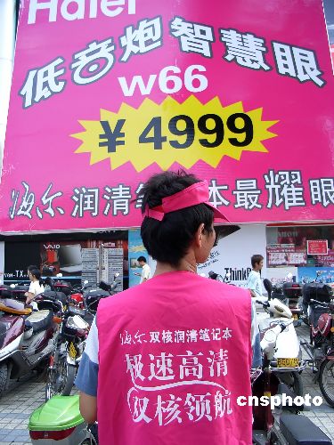 2006年国庆长假7天,各商场门前尽是打工的大学生。“物美价廉”的打工大学生让商家乐得合不拢嘴。商家称,每个大学生一天只用付30-40元,大学生的素质比起自己平常的员工好多了。大学生们则认为,利用长假出来打工,主要是让自己得到锻炼。中新社发 骆文刚 摄