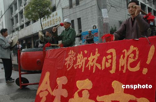 10月24日,河南省社旗县赊店镇的回族群众敲锣打鼓,庆祝开斋节到来。当日是中国的回族、维吾尔族等10个信奉伊斯兰教民族的传统节日开斋节,社旗县穆斯林群众身穿节日盛装,聚集在县城内清真寺欢度节日。中新社发 宋同杰 摄