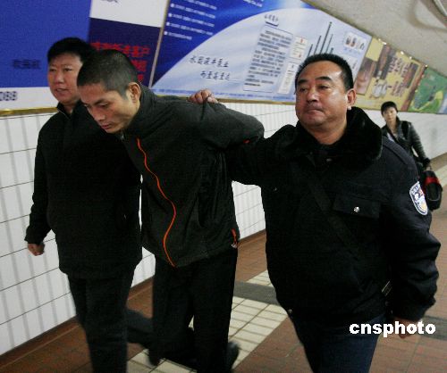 10月26日,因携带毒品的犯罪嫌疑人李某在成都被押回沈阳。据了解,李某曾是军人,在4年的军旅生涯里先后2次荣获优秀士兵,早在7年前也是在列车上曾将车匪制服,被公安机关授予见义勇为殊荣。李某万万没有料到自己曾在列车上“擒匪”的英雄壮举,如今自己却又在列车上被擒。目前,此案正在进一步调查之中。中新社发 蔡冰 摄