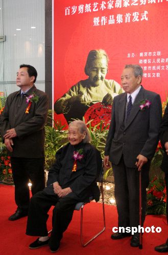 10月27日,由南京市文联和鼓楼区人民政府联合主办的“百岁剪纸艺术家胡家芝剪纸作品展暨作品集首发式”在南京美术馆开幕。据了解,胡家芝1897年出生于浙江省桐庐县的书香门第,父亲胡传泰是著名书法家。这位跨越3个世纪、剪纸整整100年的老人,用手中剪刀创作了大批剪纸作品,令人叹为观止。中新社发 孙忠南 摄