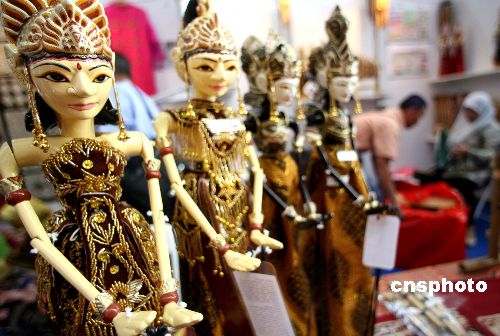 十一月一日,正在广西南宁举行的第三届中国—东盟博览会上印尼展区的精致人偶色彩艳丽做工精细,颇受民众喜爱。中新社发 廖文静 摄