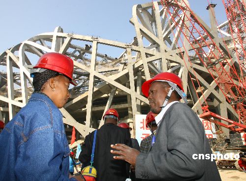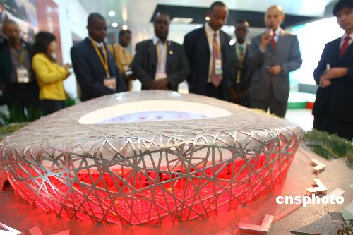 十一月三日,部分采访中非合作论坛的非洲记者前往北京市二○○八工程展示中心参观。中新社发 盛佳鹏 摄