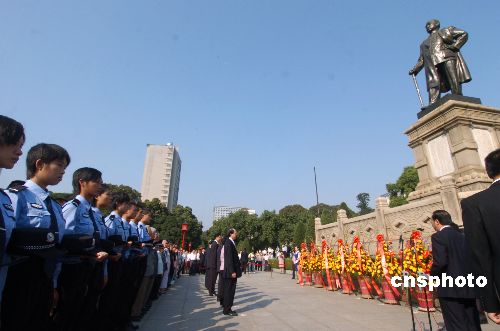 十二日上午,广东省各界在中山纪念堂举行纪念孙中山先生诞辰一百四十周年大会。中新社发 柯小军 摄