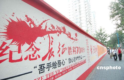 11月13日,在杭州文三路等多处建筑外围墙上,40多幅长征主题作品成为一道独特的风景。中新社发 引炜 摄
