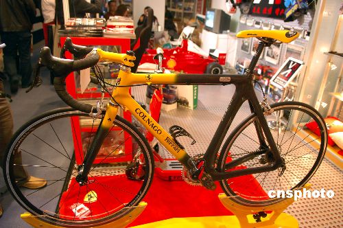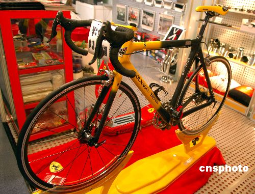 11月19日,售价11万人民币的全球限量版法拉利自行车北京国际车展上展出。中新社发 张朋 摄