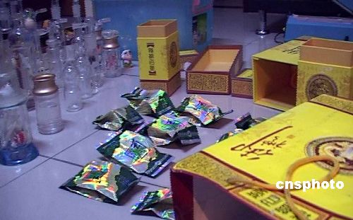 日前,北京海淀警员将两名涉嫌贩卖冰毒的东北夫妻和一名前来购买的毒品的吸毒人员抓获,同时起获了即将流入市场的540余克伪装成铁观音茶叶的冰毒。现涉嫌贩卖冰毒的刘某、王某及吸毒人员陈某已被海淀警方依法刑事拘留。中新社发 吴建中 摄
