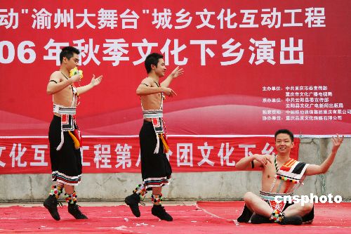 11月28日,“渝州大舞台,情暖新农村”首台文艺演出在三峡库区重庆云阳举行,拉开“送文化下乡”活动的序幕。1000余名移民应邀观看演出。中新社发 饶国君 摄