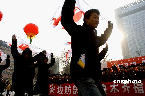 十二月一日,四十余名青年志愿者脚蹬滑轮鞋,身披印有“红丝带”图案的旗帜,在新疆乌鲁木齐市人民广场上穿梭。当天是“世界艾滋病日”,该市举行盛大的艾滋病预防宣传活动,呼吁更多的人加入到关爱艾滋病人的行列中来,为艾滋病感染者创造一个良好的社会氛围。中新社发 刘新 摄