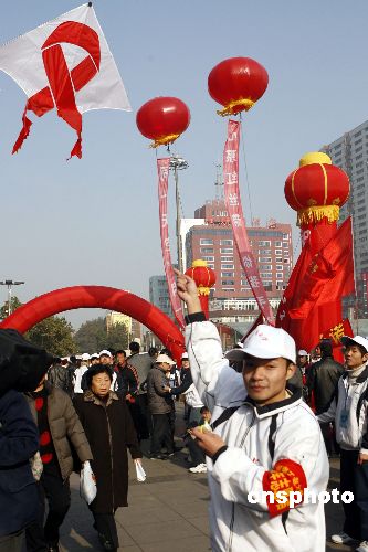 十二月一日,一名大学生志愿者放风筝,义卖“红丝带”风筝。今天是第十九个世界艾滋病日,一些大学生志愿者在郑州火车站广场放风筝,义卖“红丝带”风筝。他们打算将卖风筝的钱捐献给防治艾滋病基金。中新社发 慎重 摄