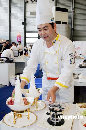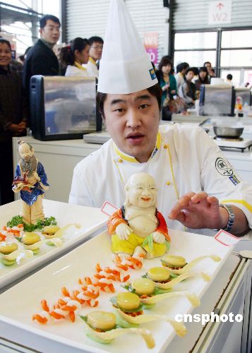 十二月二日,六十余名大陆和台湾的年轻厨师在上海参加国际烹饪艺术大赛。中新社发 潘索菲 摄