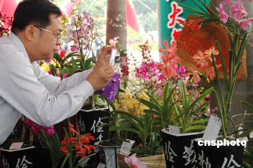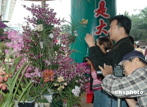 二00六年中国(海南)国际热带农产品冬季交易会(简称“海交会”)十二月三日进入第三天,恰逢周末,展馆游人络绎不绝。花卉展馆里姹紫嫣红的鲜花更是吸引了众多市民,赞叹之余,市民纷纷举起相机拍个不停。中新社发 尹海明 摄