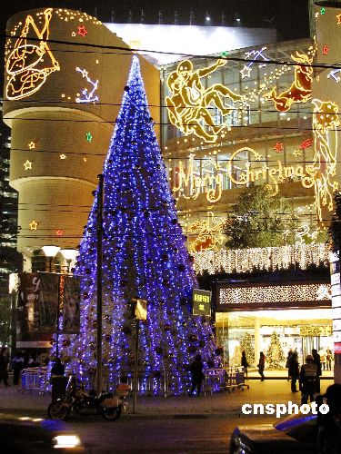 十二月初,上海迎圣诞的气氛正浓,璀璨圣诞树和灯饰为上海南京路、淮海路等时尚地带增添了异国情调。中新社发 潘索菲 摄