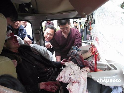 12月11日中午,广西昭平县走马乡西坪路段发生了一起交通事故,微型车司机被夹在了驾驶室里大半个小时,昭平县公安局交警大队携带施救工具赶到现场后仅用十分钟就把被困司机解救了出来。中新社发 林巧 摄