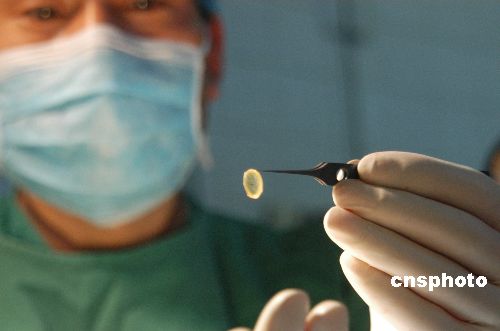 12月13日,在河北省邢台市眼科医院的手术室内,经过两个小时的手术,眼科专家成功为两名邯郸贫困眼病儿童做眼角膜移植手术。12月12日晚10时40分,重病在身的河北经贸大学副教授周明华在省四院去世,遵照其遗嘱,将眼角膜捐给贫困盲孩子,市眼科医院医生将其眼角膜取出保存,13日在邢台移植给两名邯郸贫困眼病儿童。中新社发 黄涛一 摄